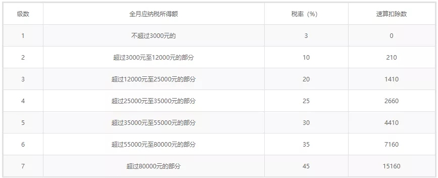 按月换算后的综合所得个人所得税税率表(3%~45%的七级超额累进税率)