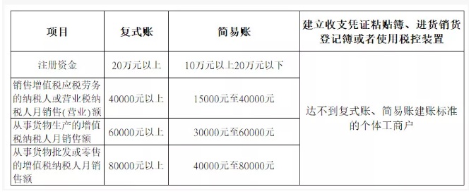 二、个体户建账标准: