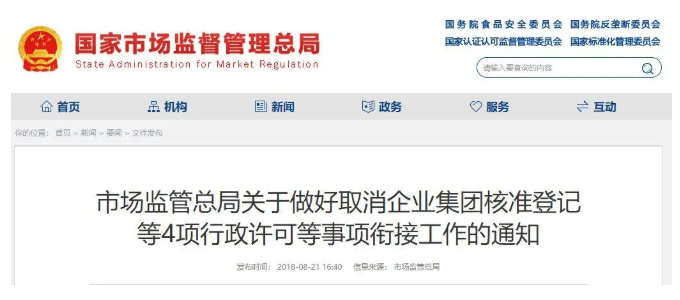 注册新规!取消企业集团核准登记